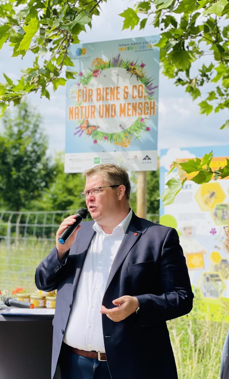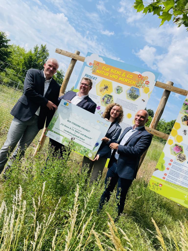 v.l. Herr Andreas Bausewein (Oberbürgermeister der Stadt Erfurt), KoWo Geschäftsführer Herr Alexander Hilge, Frau Mohr-Stockinger (Verein Kommunen für Biologische Vielfalt e.V.), Herr Andreas Horn (Beigeordneter für Sicherheit und Umwelt der Stadt Erfurt)
